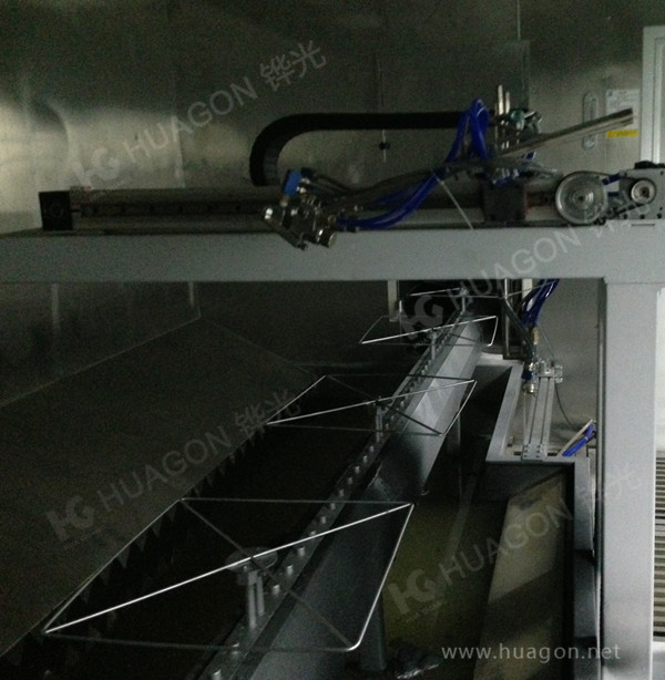 上料-手動(dòng)靜電除塵-素材預(yù)熱-自動(dòng)追蹤噴涂-靜置-隧道式烘烤-冷卻-下料